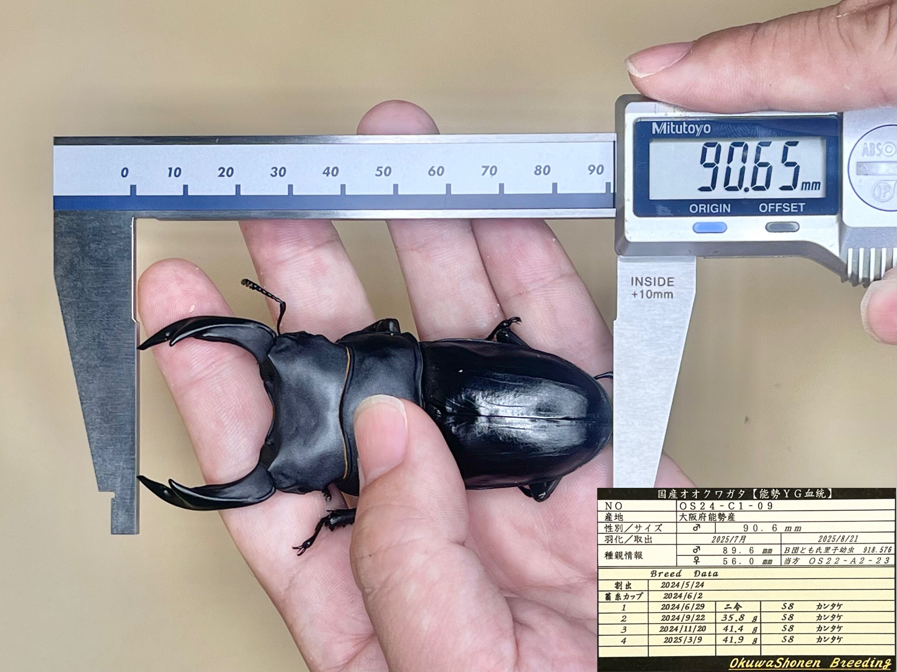 親虫:♂89.6mm(B団とも氏里子幼虫918.576)