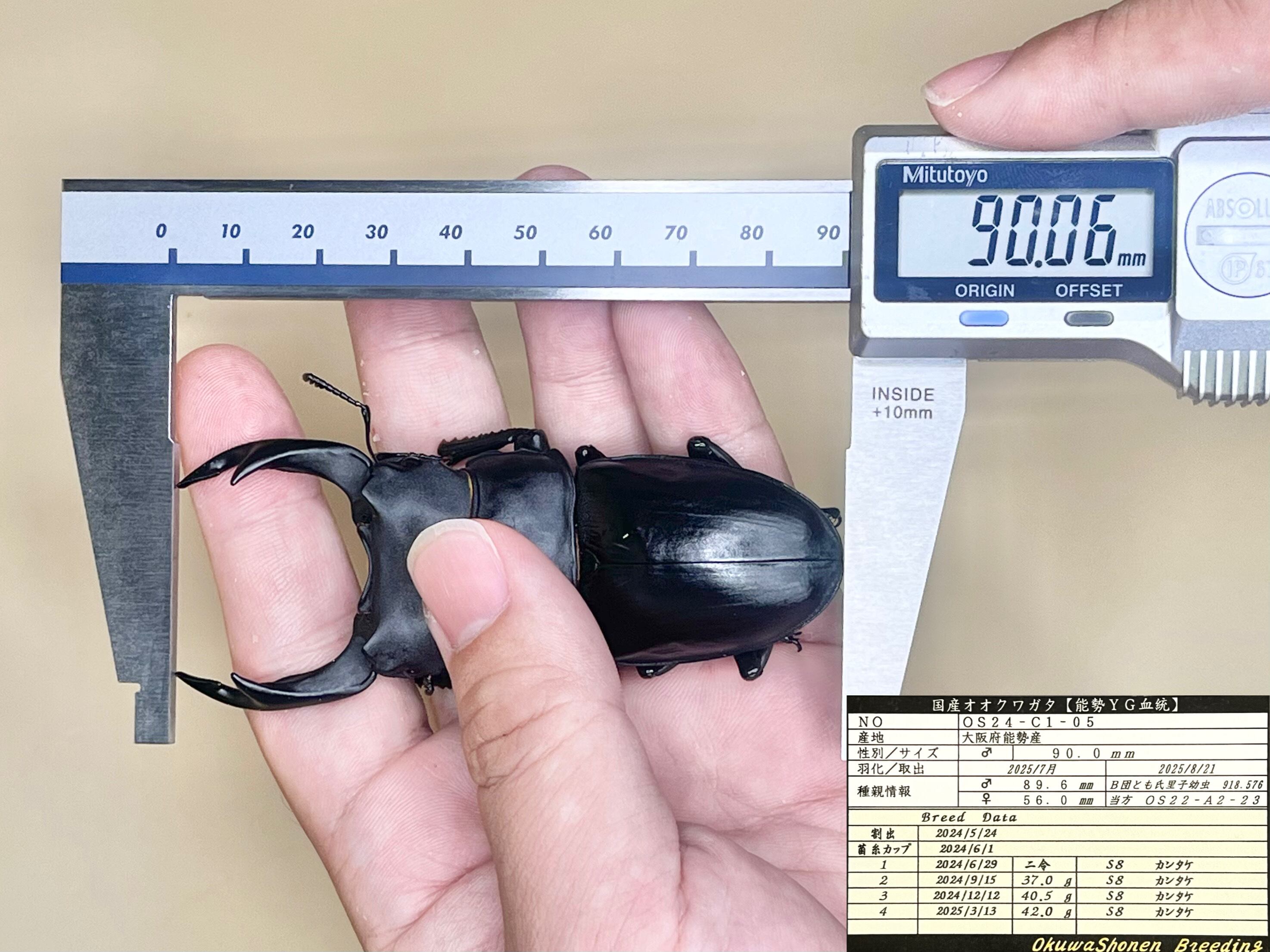 親虫:♂89.6mm(B団とも氏里子幼虫918.576)