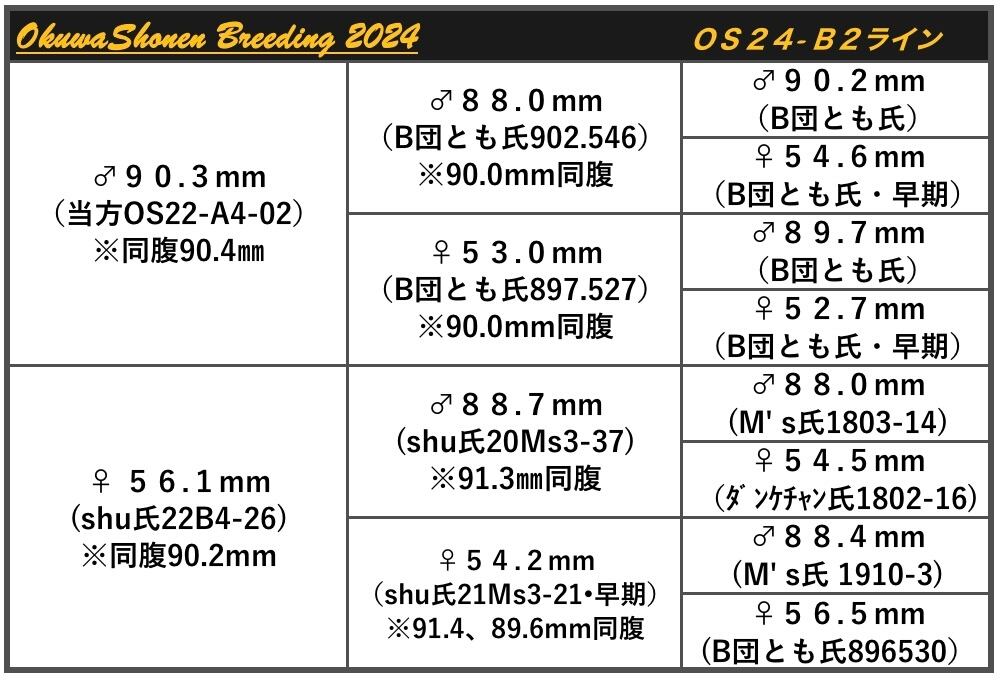B2ラインは、体重の乗りも良く、91.9㎜、91.5㎜、89㎜台3頭、88㎜台5頭が羽化しています。